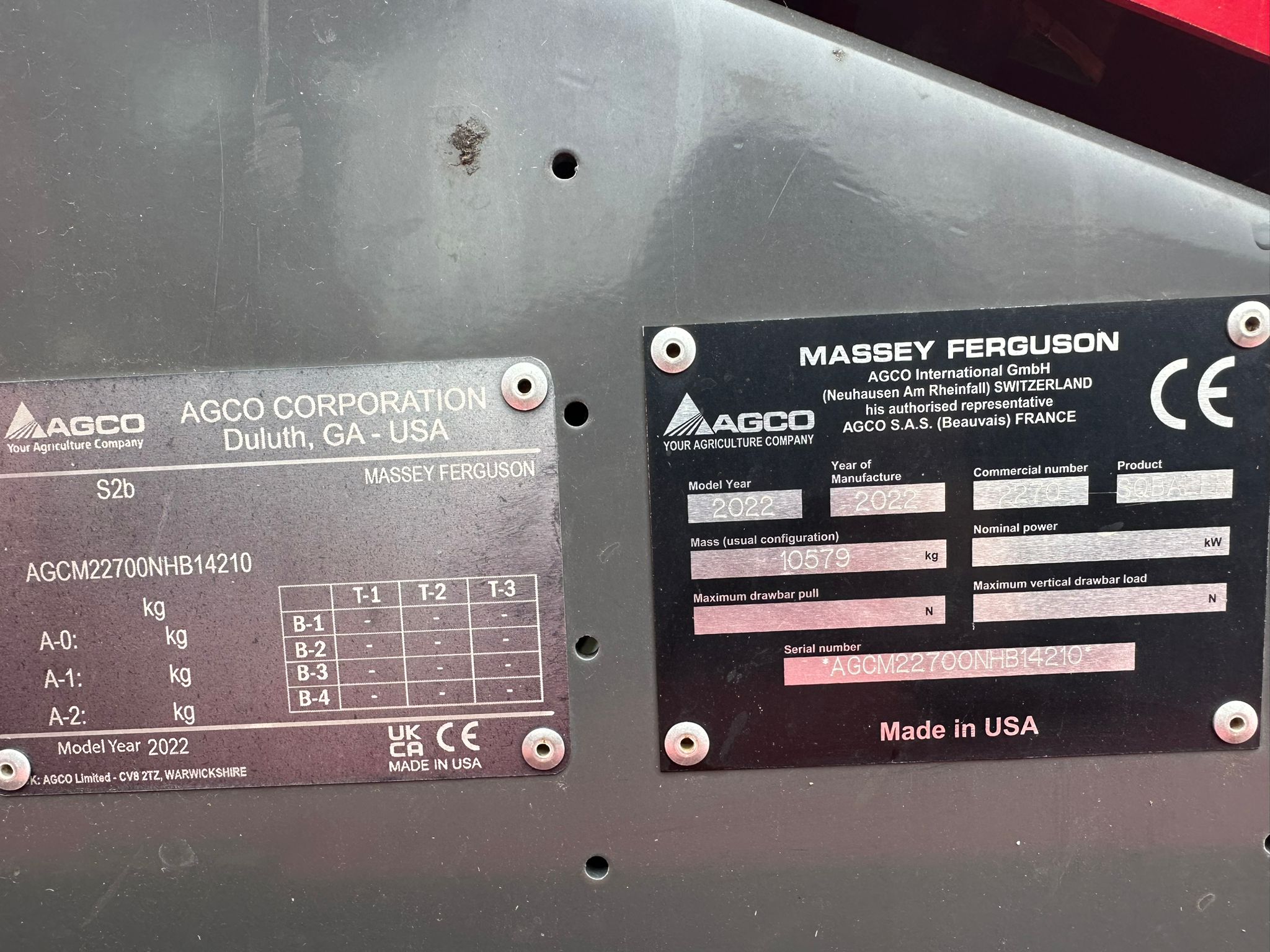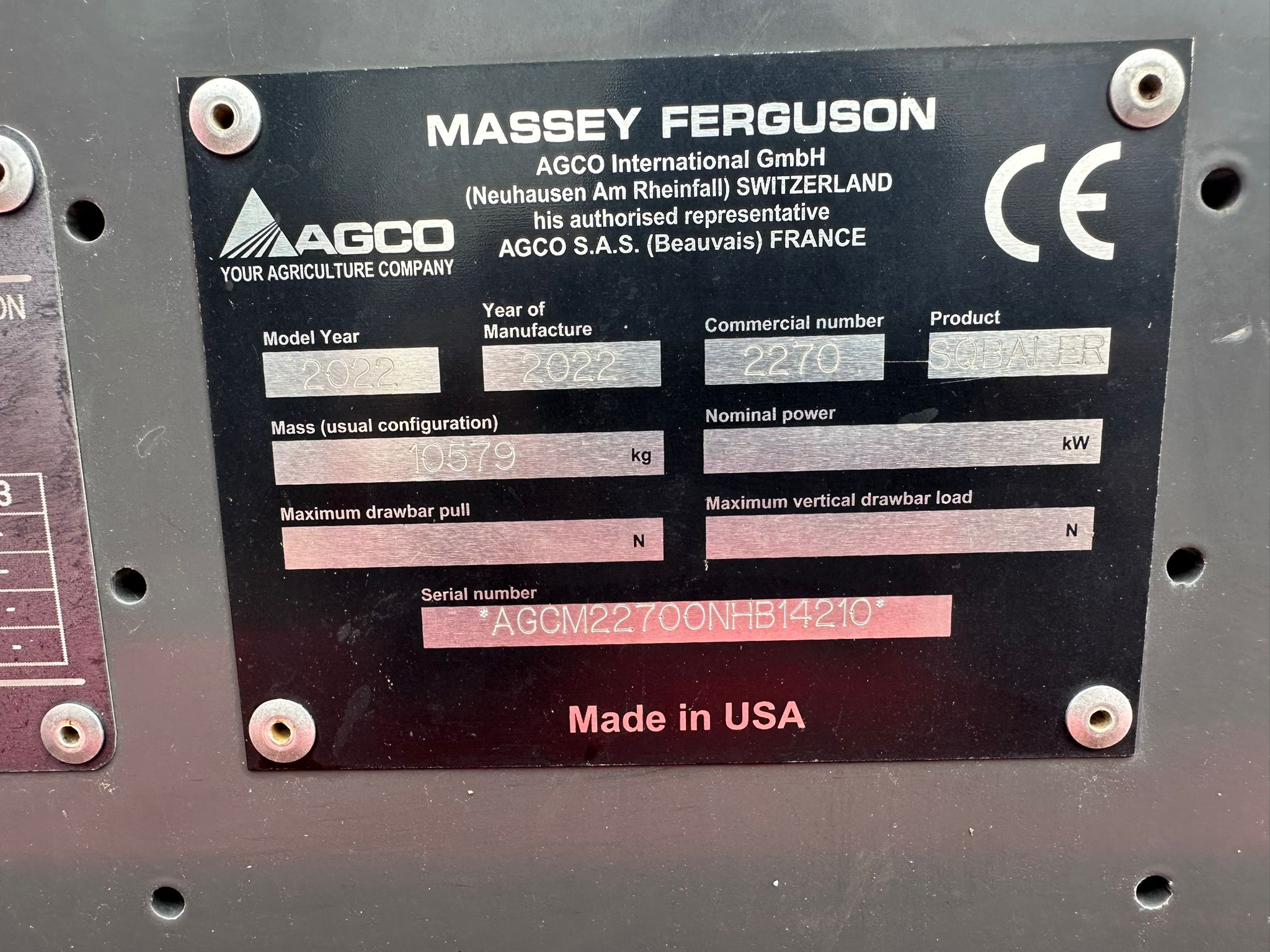 Min 170 CP la priza de putere a tractorului de 1.000 rpm cu ax cu 20 caneluri; Min 270 CP la tractor (cu EPM);(MF7726 S); 3 valve hidraulice cu dubla actionare; O priza electrica CE;